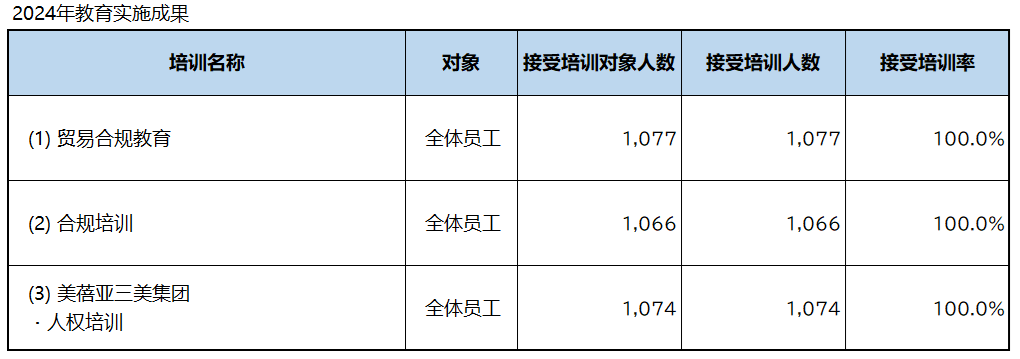 2024年度以员工为对象实施了权力骚扰、性骚扰以及其他骚扰的培训,以在线学习形式实施了保密信息管理、个人信息保护和防止行贿受贿及腐败行为的培训,以部门负责人和销售部门为对象实施了有关反垄断法的培训。