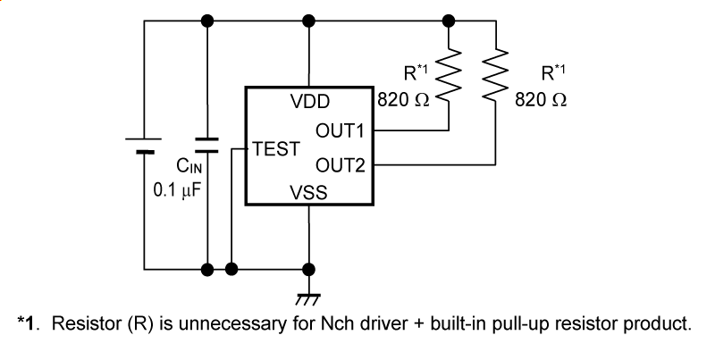 *2. 输出方式为N沟道驱动器 + 内置上拉电阻 (10 kΩ typ.) 时,VDD = 3.8 V ~ 5.5 V。