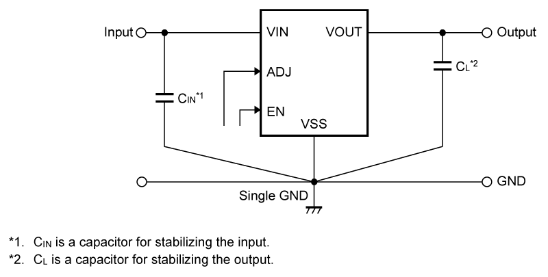 - 可以使用陶瓷电容器 (4.7 μF ~ 1000 μF)