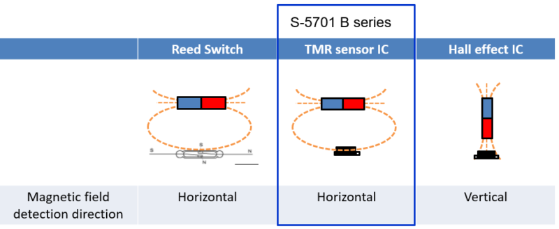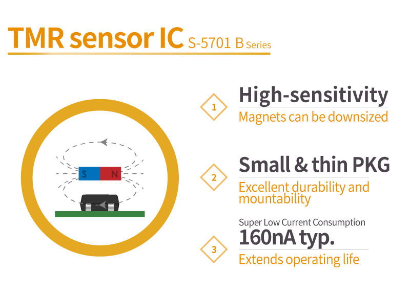 ABLIC为用于检测水平磁场的“小巧、智能、简单”的产品系列增加了一种新的“S-5701 B系列”TMR传感器IC产品,可以提供给寻求磁簧开关替代品的客户,以进一步扩大我们的客户群。