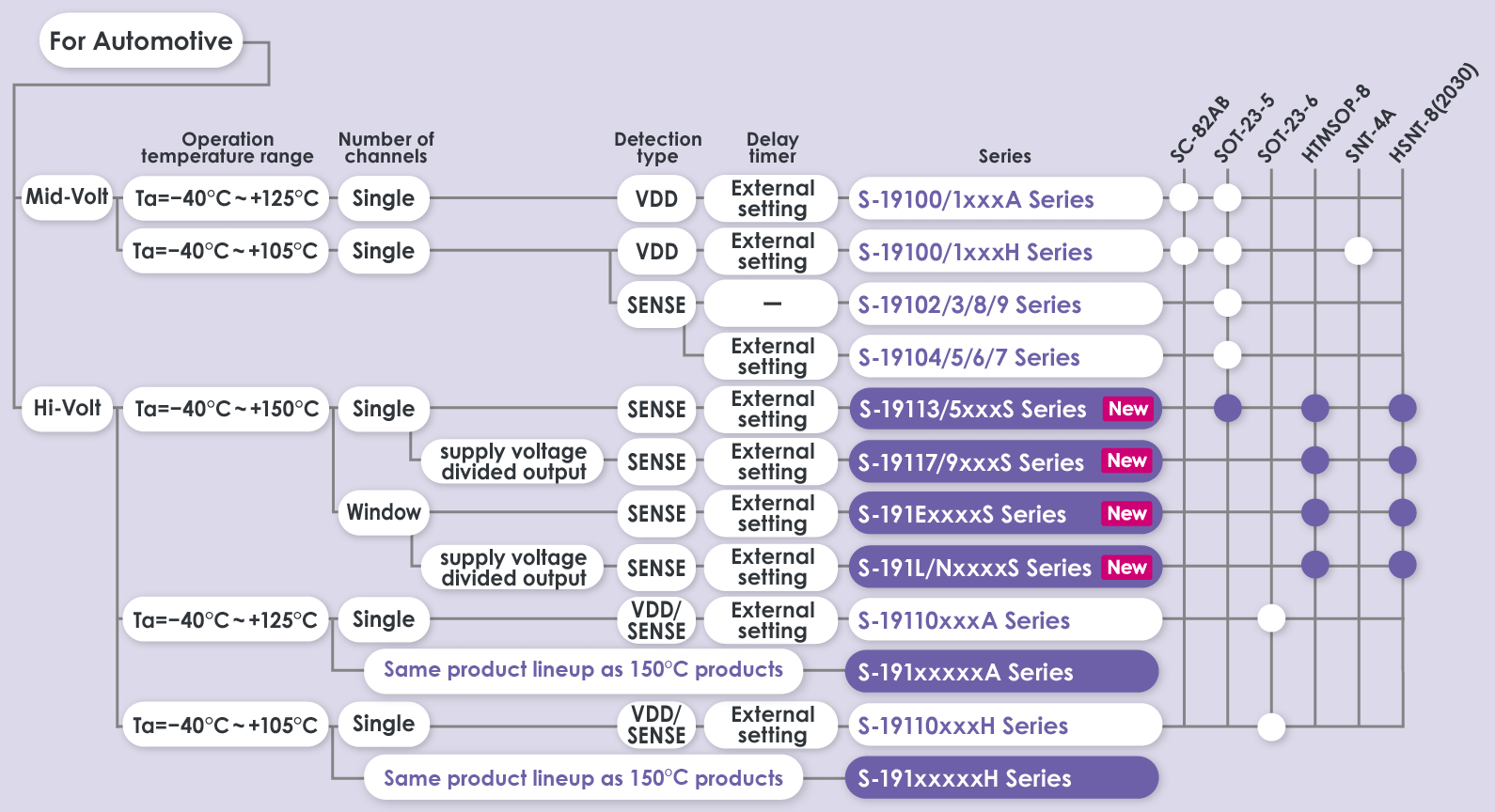 此外,S-191ExxxxS系列采用超小型HSNT-8(2030) (2.0 x 3.0 x t0.5mm)封装,该产品可充分满足目前对小型车载器件日益增长的需求。