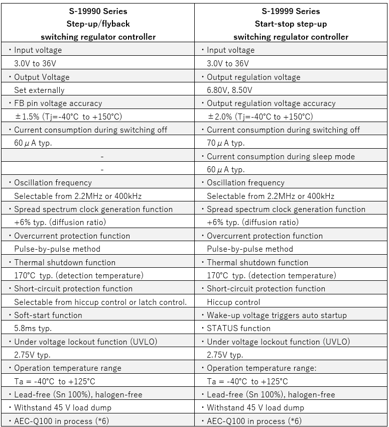 S-19990/9系列还应对PPAP(Production Part Approval Process: 生产零件批准程序),有关车载用IC的品质规范AEC(*)-Q100 Grade1(*Automotive Electronics Council: 汽车电子协会)正在应对中。