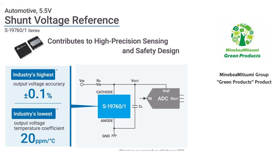 美蓓亚三美株式会社(MinebeaMitsumi Inc.) 旗下的艾普凌科有限公司(总裁:田中诚司,总部地址:东京都港区,下称“ABLIC”)今天推出实现业界最高(※1)±0.1%的输出电压精度、业界最小±20ppm/℃的输出温度系数的车载用分流电压基准IC「S-19760/1系列」。