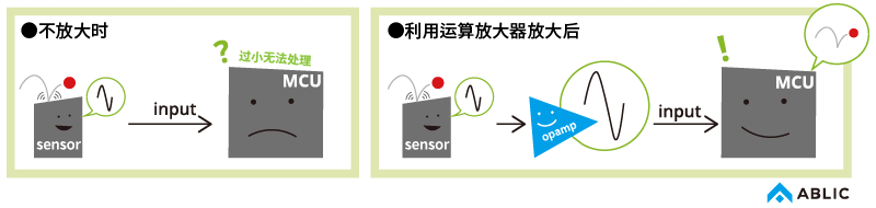 op-amp,image of amplifier而且,将上述放大信号输入微型计算机*(MCU)后,MCU就能够更为准确地对传感器信号实施处理。