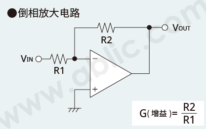 倒相放大电路中带有负号(-)。VIN电压上升时,VOUT电压下降。