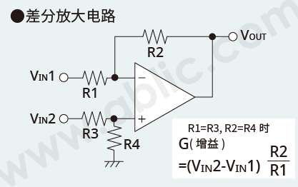 • VOUT=R2/R1×(VIN2-VIN1)