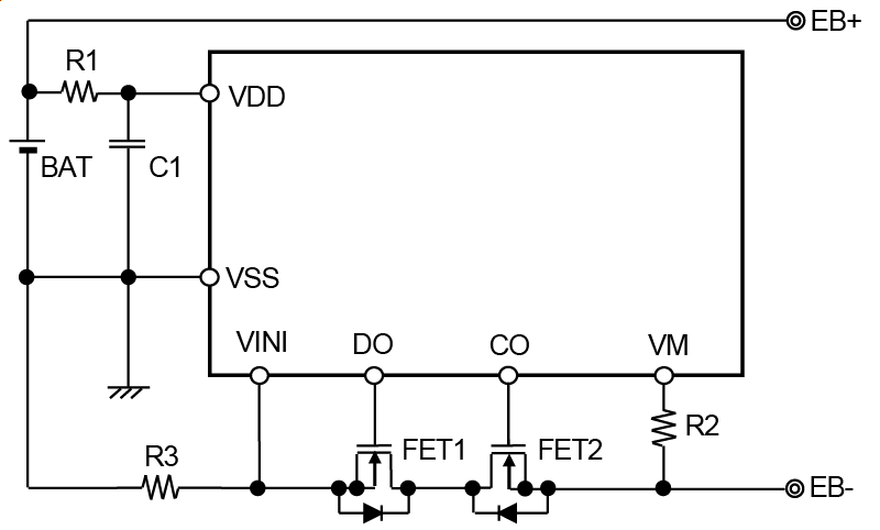 *2. Overdischarge release voltage = Overdischarge detection voltage + Overdischarge hysteresis voltage