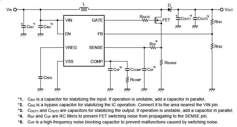 Its wide input operating range of 3.0 V to 36 V makes it suitable for powering automotive start-stop systems and emergency battery backup systems. When this IC is used to configure a converter and the output voltage (VOUT) of the converter is applied to the VIN pin in a bootstrap configuration, the input voltage can be extended below the operating input voltage range after startup.