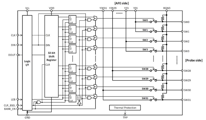 • 32-channel high-voltage SPDT analog switches with user-selectable SDI or Bank interface
