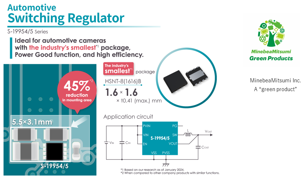 ABLIC (President: Seiji Tanaka, Head Office: Minato-ku, Tokyo; hereinafter “ABLIC”), a group company of MinebeaMitsumi Inc., today launched the S-19954/5 Series of automotive step-down switching regulators.