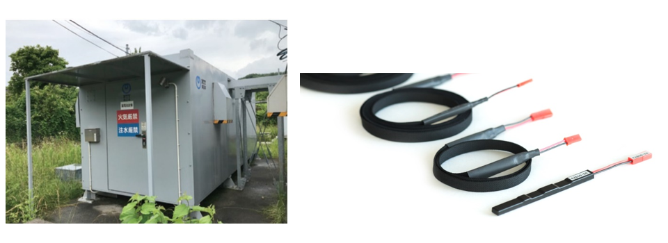 Left) Unmanned communication facilities of NTT EAST, Right) Battery-less Water Leak Sensor