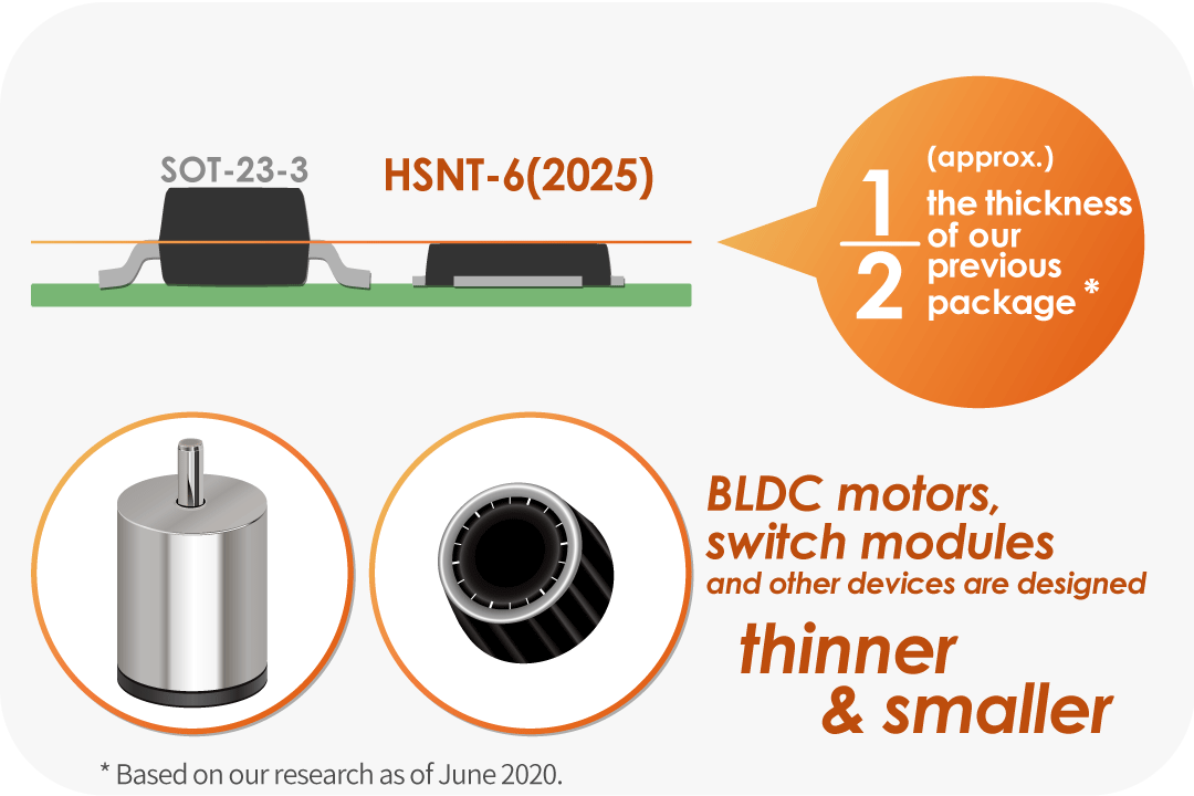 The HSNT-6(2025) package substantially reduces the overall space of the IC and magnets.