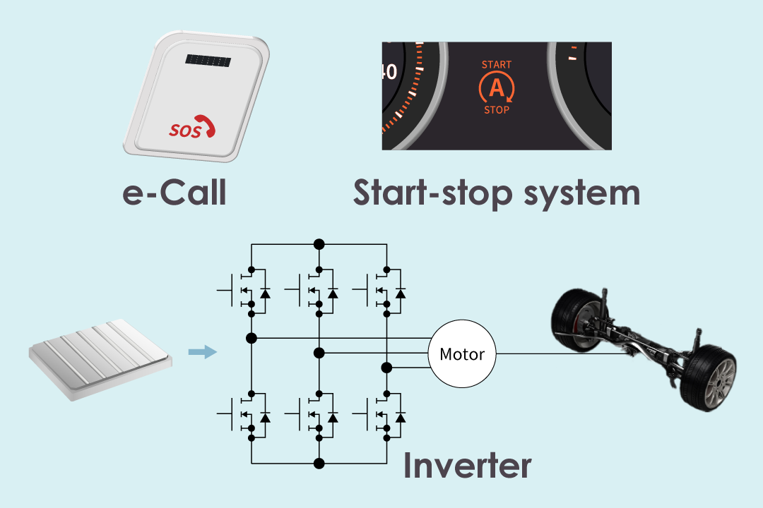 Electric door latches with emergency backup battery and e-calls are designed to continue operation for a certain period of time after a traffic accident. The S-19990 Series can boost voltage even with low-voltage capacitors/batteries, making the emergency backup battery more compact and reducing costs.