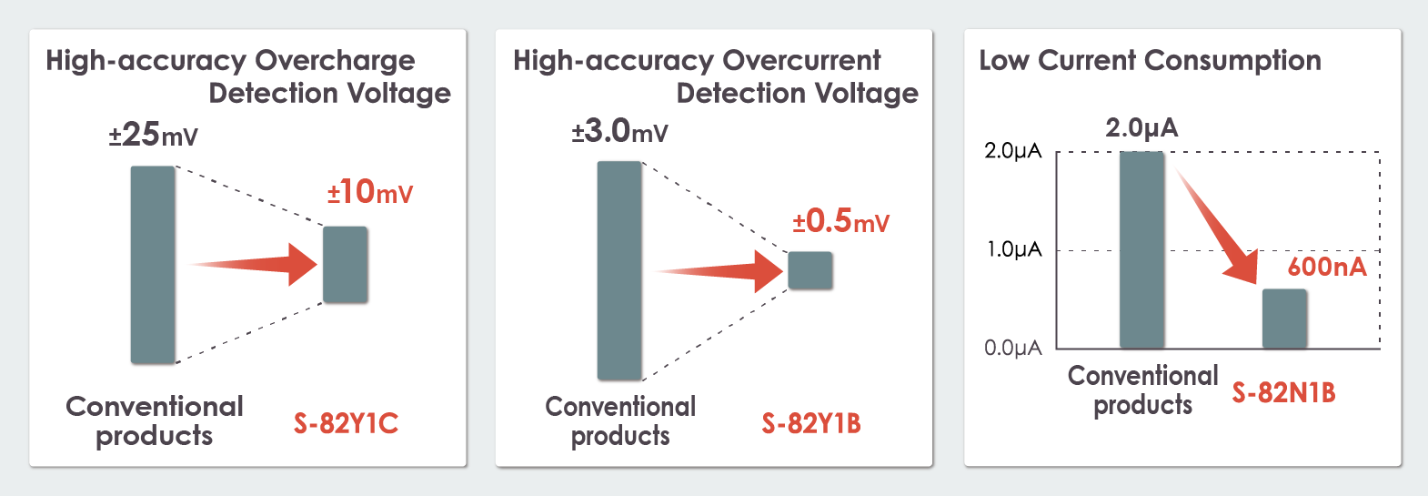ABLIC's 1-cell battery protection ICs. Improving battery pack performance