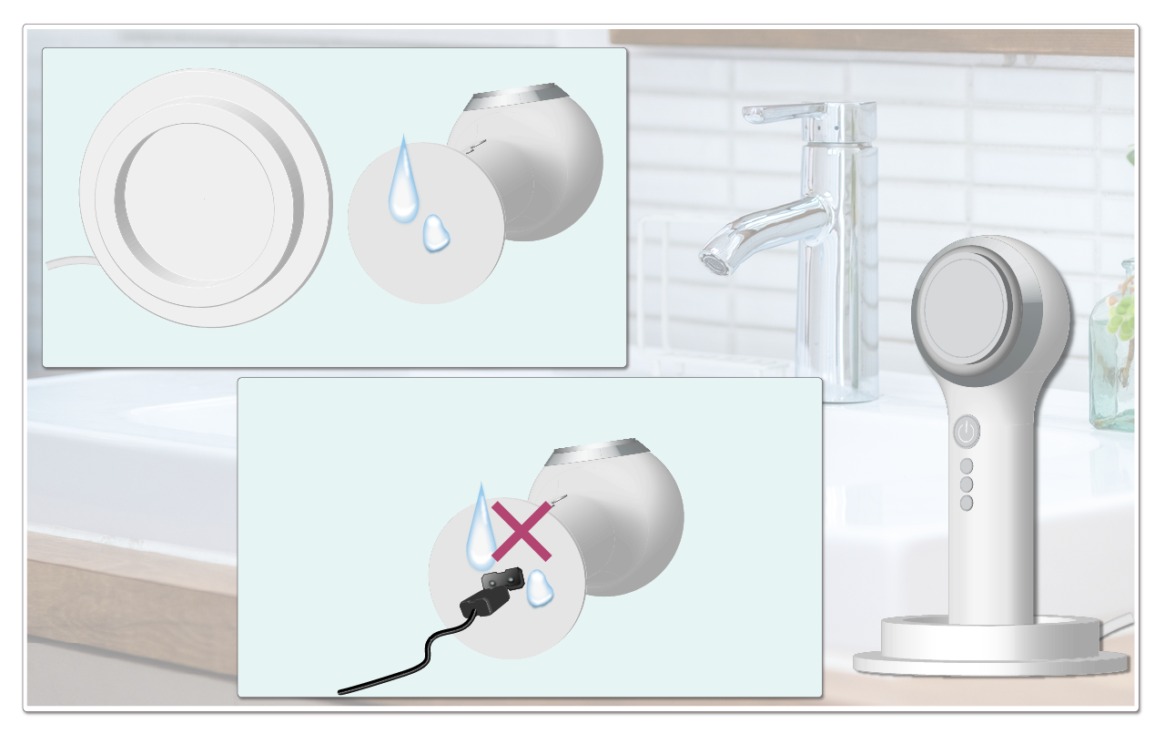 With ABLIC's wireless power transfer, there is no need to expose charging pins. Therefore, it is perfect for beauty appliances used in places like washstands, for example.