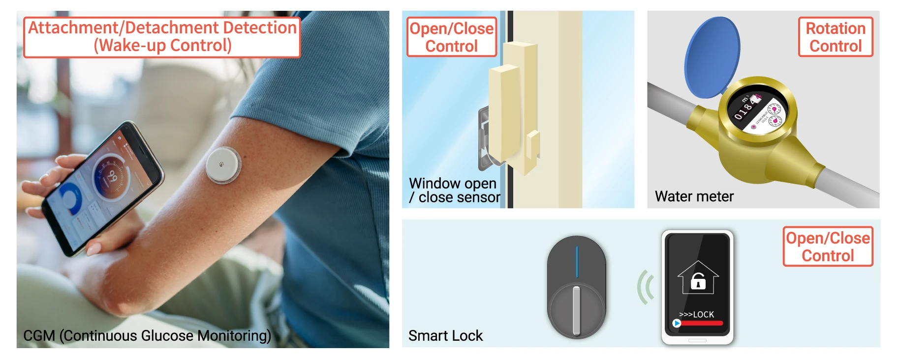It’s ideal for operations such as wake-up and on/off control, as it detects the attachment status of devices using a magnetic sensor.