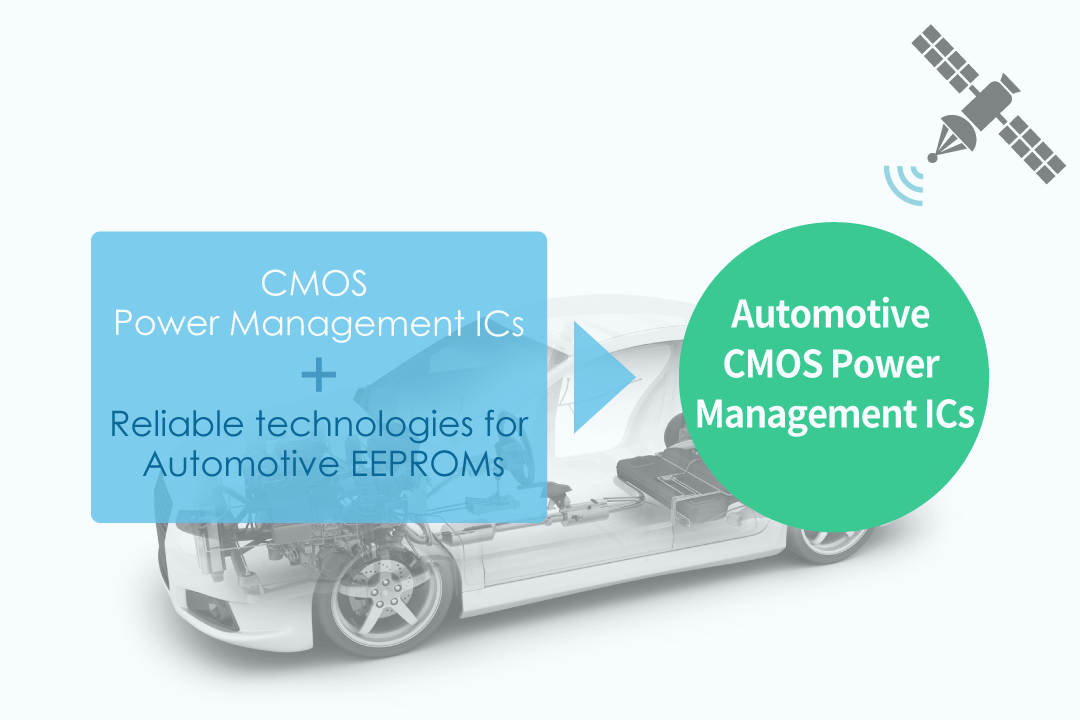 Unique high reliability is required for automotive applications. ABLIC was one of the first companies in the field of EEPROM to provide high reliability products for automobile use and was highly regarded by customers. We were able to rapidly develop in-vehicle products by applying these technologies to power management ICs. In 2009, when bipolar ICs were the mainstream in automotive power management ICs, we achieved a low current consumption of 4.0μA, which was epoch-making for automotive linear regulator ICs at that time. We currently offer a wide range of automotive power management ICs, from Switching Regulators to Lithium-ion Battery Protection ICs. In the future, we hope to expand these technologies to fields that require higher reliability.