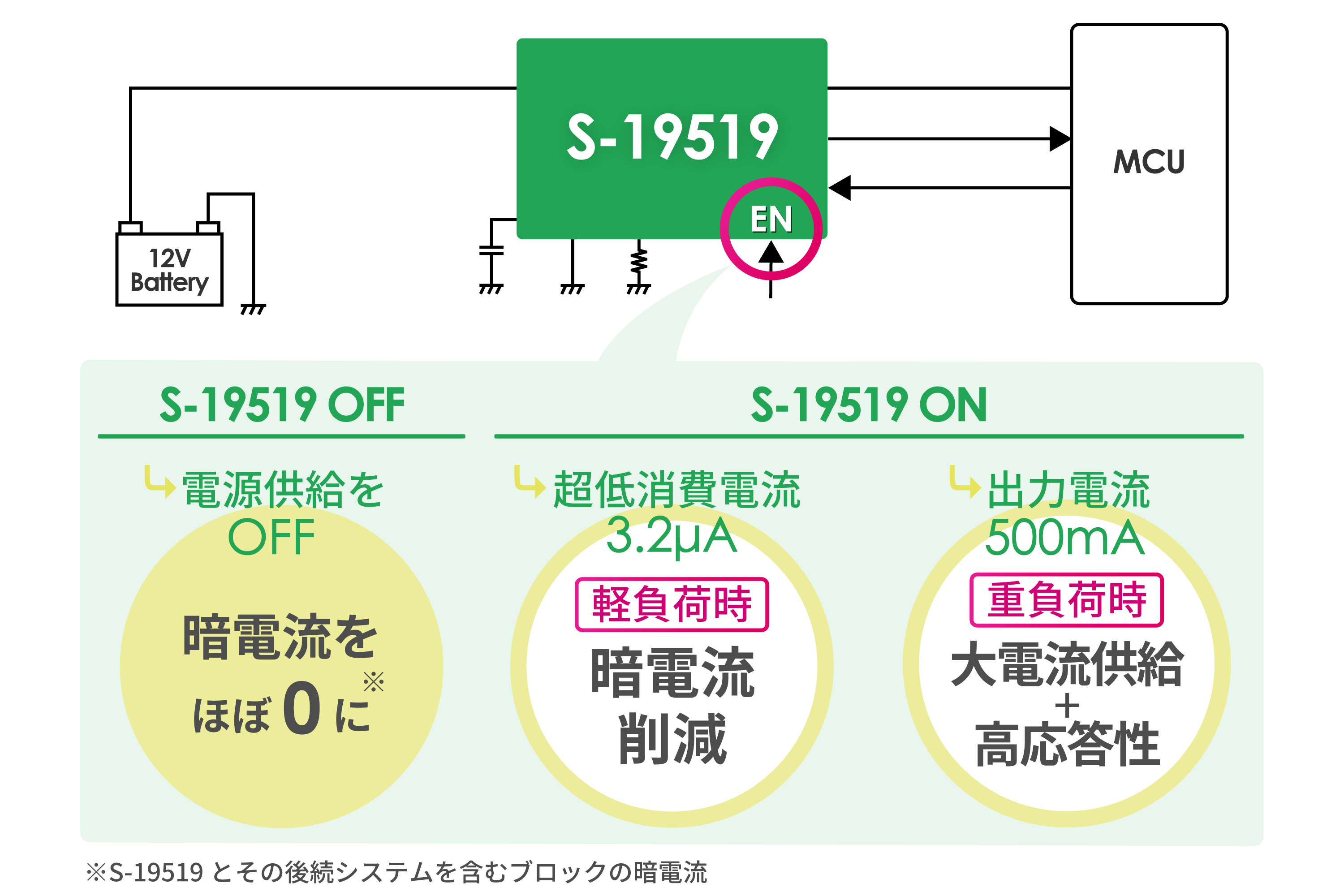 間欠動作でシステムの暗電流を大幅に削減
