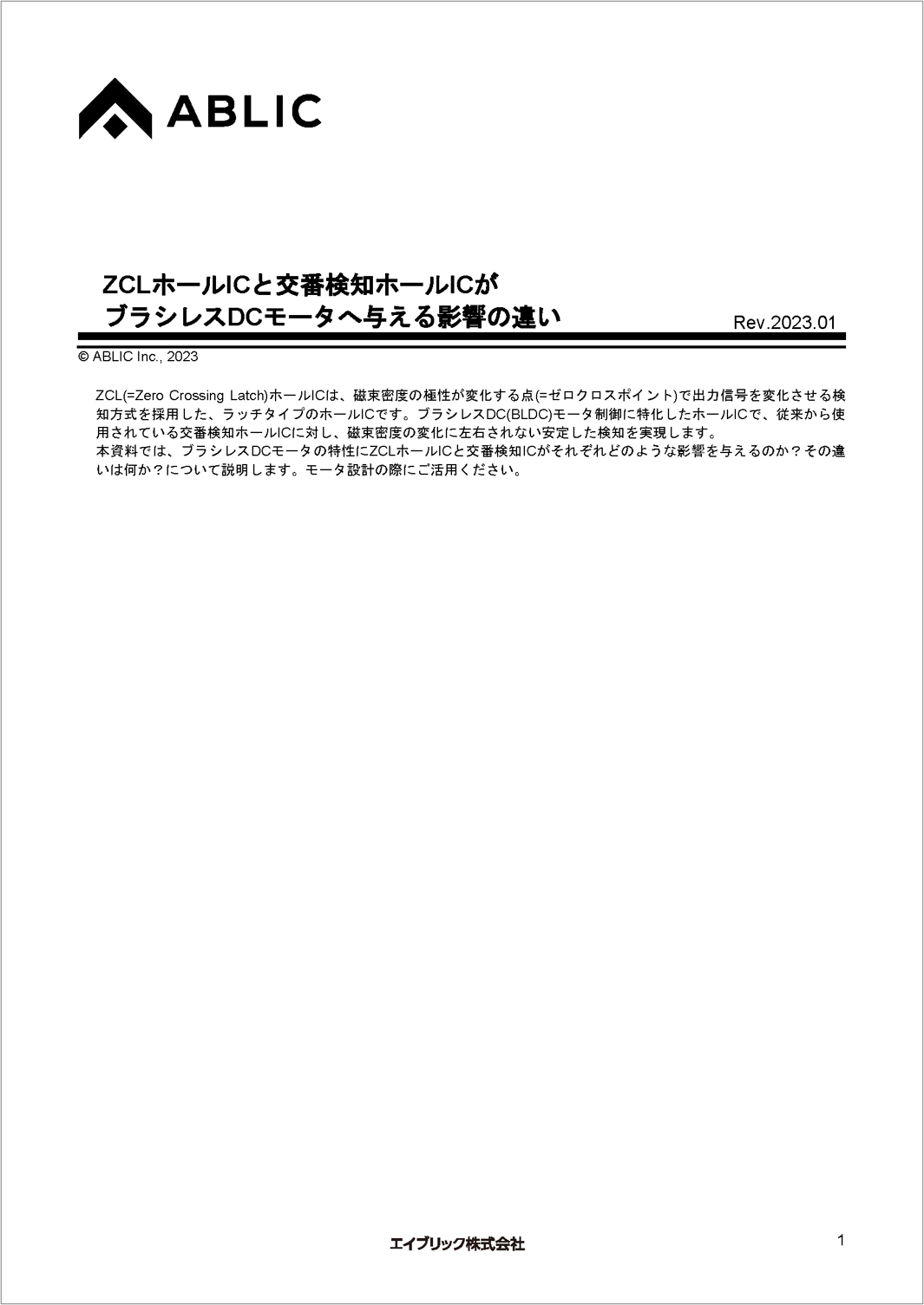 本資料では、ブラシレスDCモータの特性にZCLホールICと交番検知ICがそれぞれどのような影響を与えるのか?その違いは何か?について説明します。モータ設計の際にご活用ください。…続きを読む
