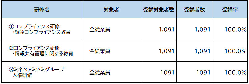 2023年度には、従業員を対象に実施したパワーハラスメント、セクシャルハラスメント等その他ハラスメント、eラーニングとして実施した機密情報管理、個人情報保護、贈収賄腐敗防止、部門長とセールス部門を対象にした独占禁止法に関する研修を実施しました。