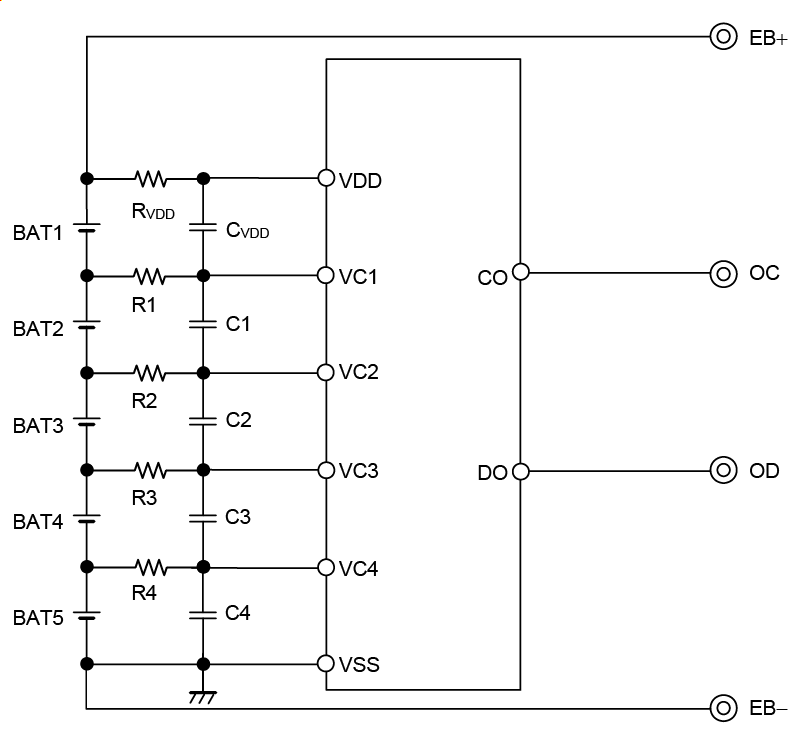本ICは、高精度電圧検出回路と遅延回路を内蔵し、3セル ~ 5セル直列のリチウムイオン二次電池の状態を8ピンの小型パッケージで監視することが可能です。