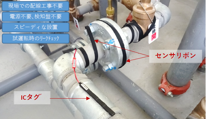 電池レス漏水センサの配管接続部への設置例 (※1)