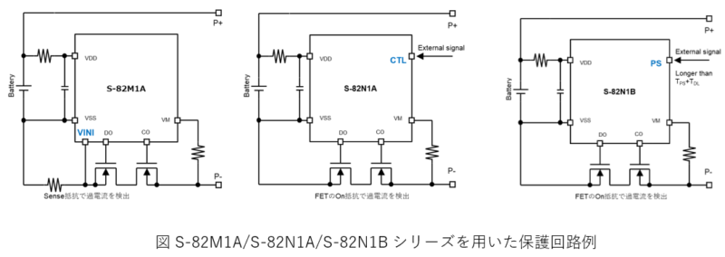 本日発売した新製品「S-82M1A/S-82N1A/S-82N1Bシリーズ」は、1セルのリチウムイオンバッテリーの保護ICで、(1)過充電検出電圧精度が±15mVと高精度でありながら、動作時消費電流は世界最小となる990nA max.を実現していること(全シリーズ共通)、(2)外付けの電流検出抵抗を用いることにより、温度変化による影響の少ない高精度な過電流保護を実現できること(S-82M1Aシリーズ)、(3)充放電制御機能により、外部信号を用いて電池パックを充放電禁止にできること(S-82N1Aシリーズ)、(4)パワーセービング機能により、パワーセービング機能動作時は、電池からの放電を禁止すると同時に、保護ICの消費電流を最大50nAに低減し、電池の消費する電流を限りなく0に抑えること(S-82N1Bシリーズ)、などが特長となっています。