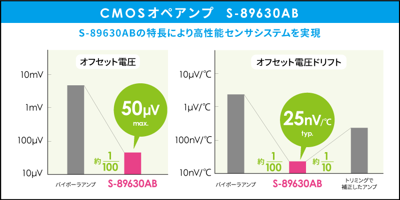 エイブリックのゼロドリフト・CMOSオペアンプ S-89630AB は、