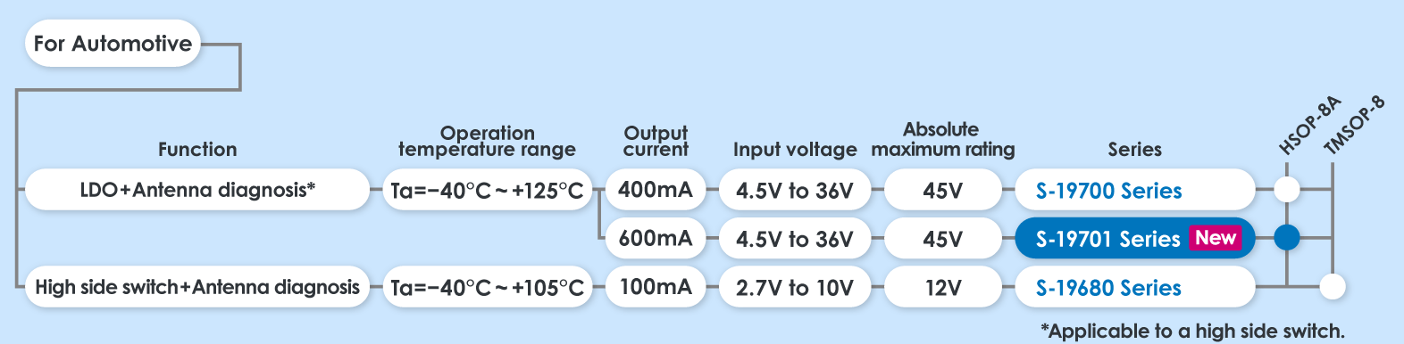 S-19701シリーズなら、シンプルな回路構成で、車載機器の更なる安全性向上に貢献します。