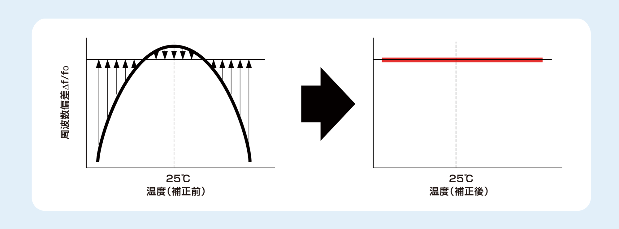 水晶振動子の周波数偏差を最小分解能=1ppmの高精度で広範囲に補正可能です。温度センサICと組み合わせることにより温度変化に対応したクロック補正値を設定することができ、時計の進みや遅れを高精度に補正します。