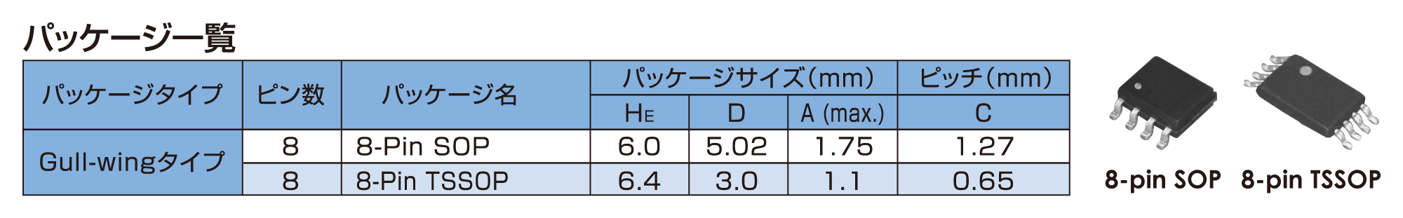 3. 8-Pin SOPと8-Pin TSSOPパッケージをラインアップ