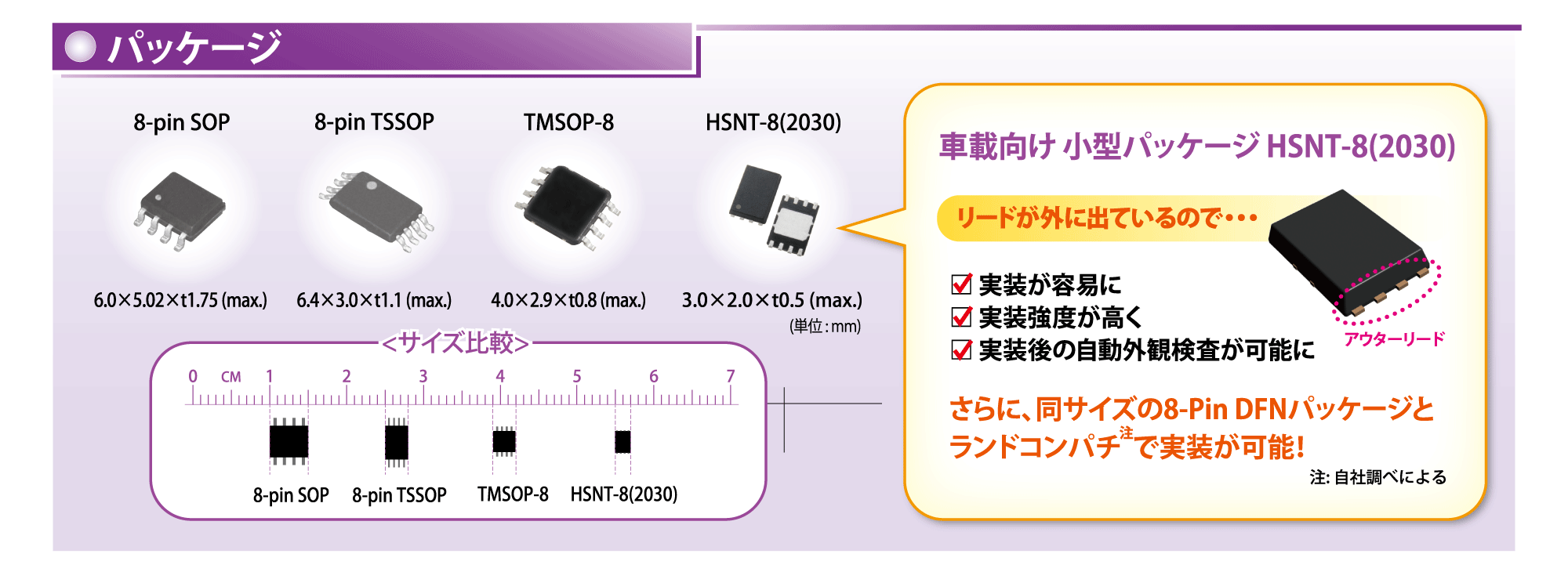 エイブリックの車載用シリアルEEPROMは、実装性の良いパッケージラインナップを取り揃えております。