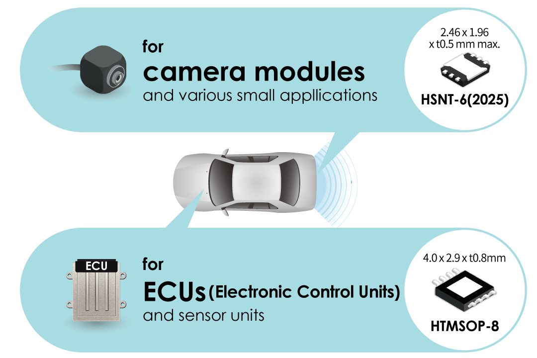 小型化が求められる車載カメラはもちろん、各種コントロールユニット(ECU)・センサ機器など、様々なアプリにお使いいただけます。