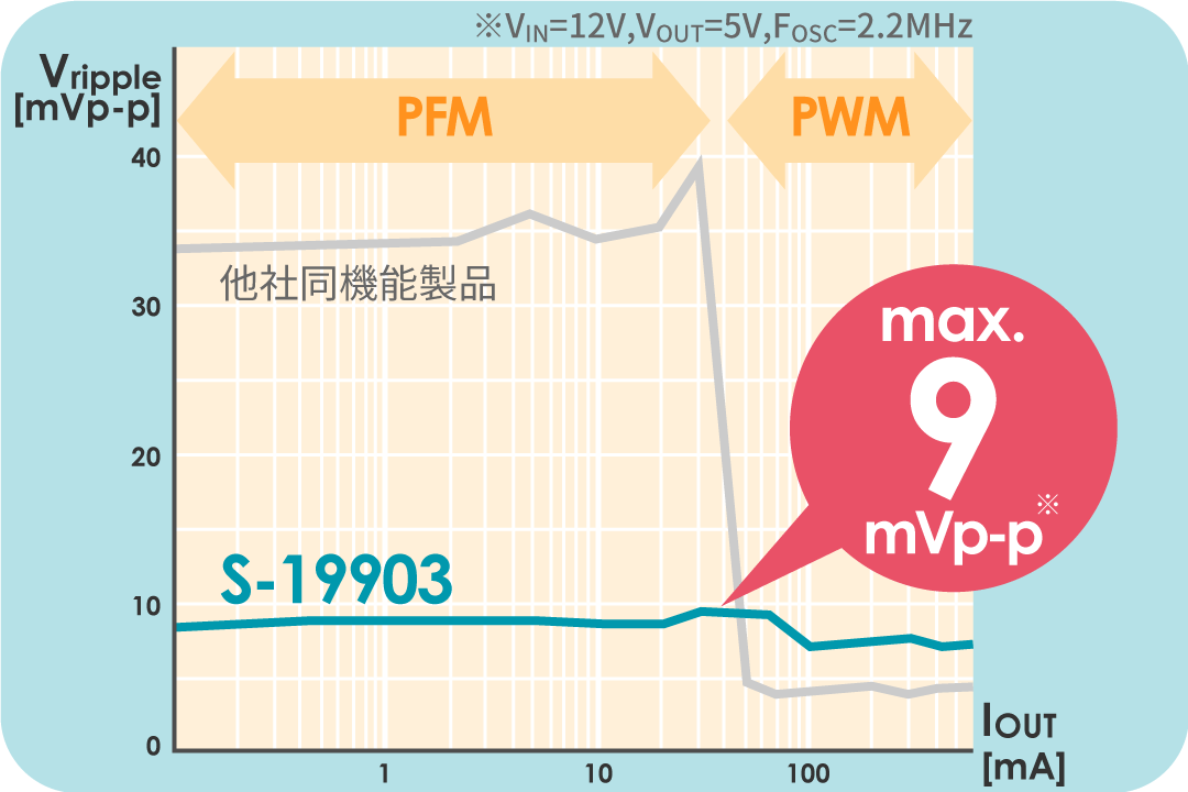 オーバーシュート/アンダーシュート対策の大きな出力コンデンサを小型化、さらには低コスト化に貢献します。