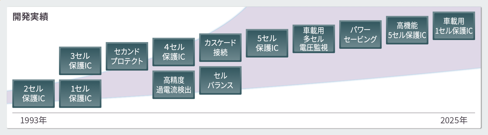 エイブリックは、1993年からバッテリー保護ICの製品化を開始し、約30年の開発、製品化の実績があります。