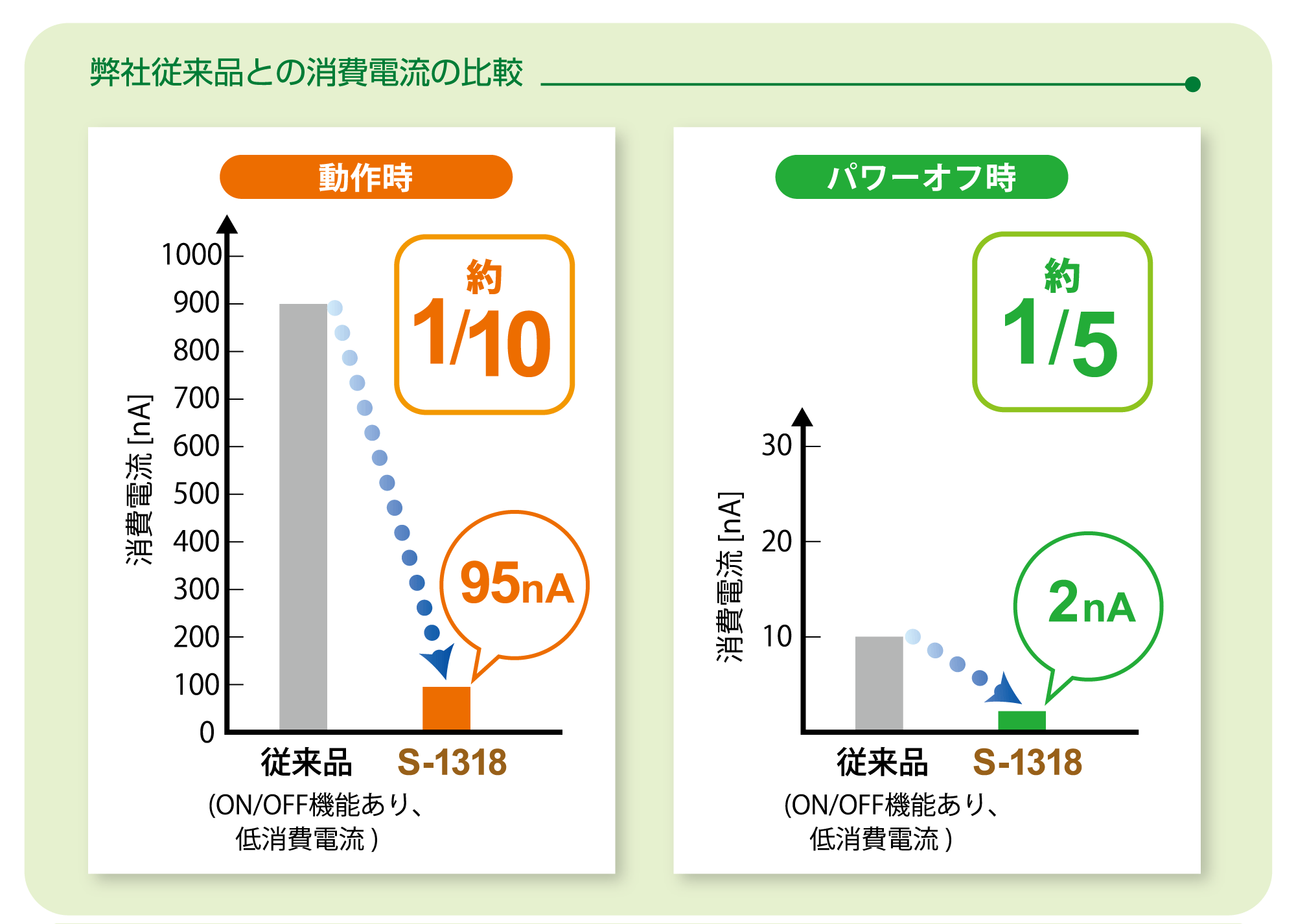 1. 世界最小クラス! 消費電流95nAを実現! S-1318