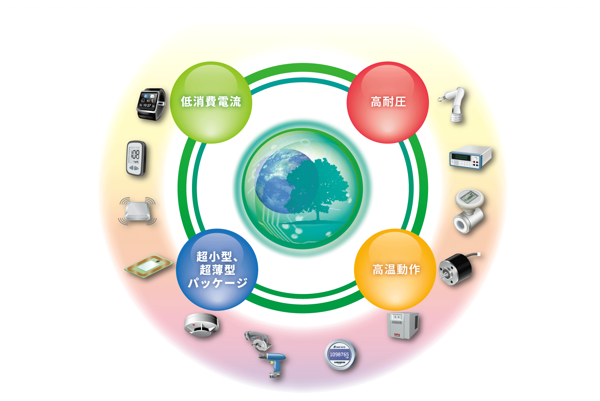 最新CMOSプロセス技術にて、消費電流の大幅な低減を実現しました。 IoT機器等バッテリー駆動のアプリケーションに最適です。