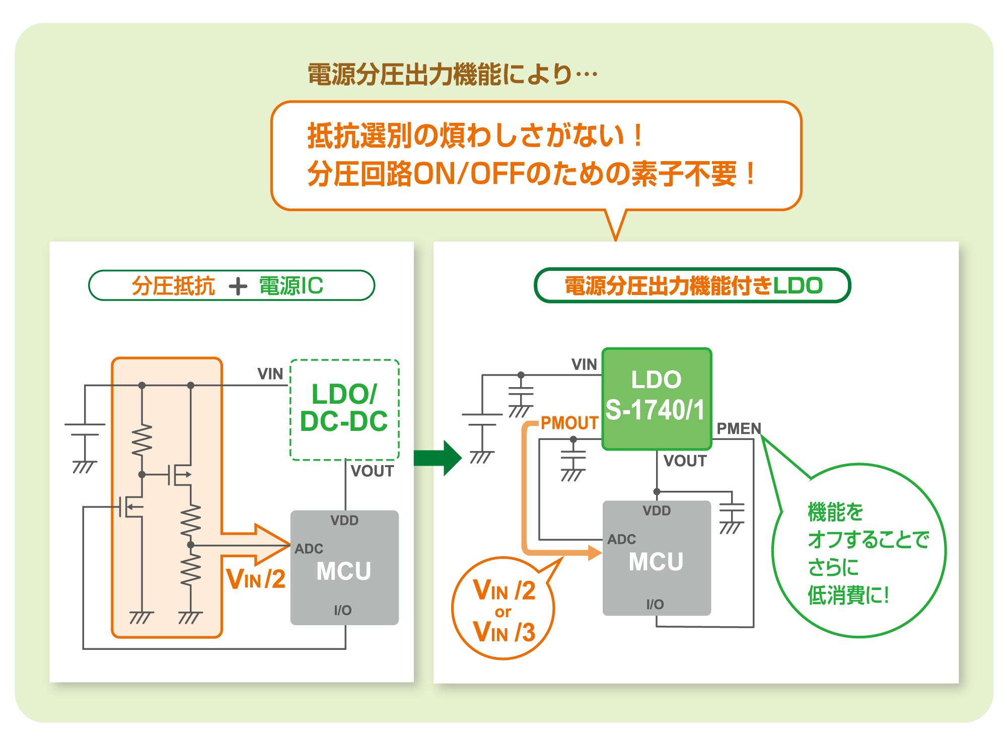 2. 世界初! 電源分圧出力機能付きLDO! S-1740/1