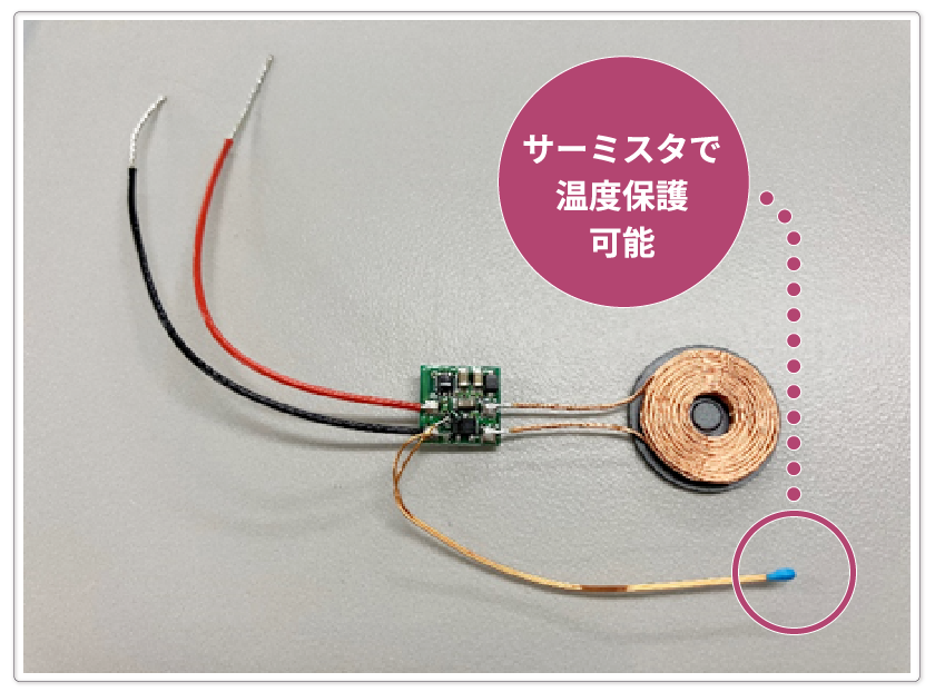 サーミスタによる保護が可能です。温度を検出したい位置にサーミスタを配置することができます。