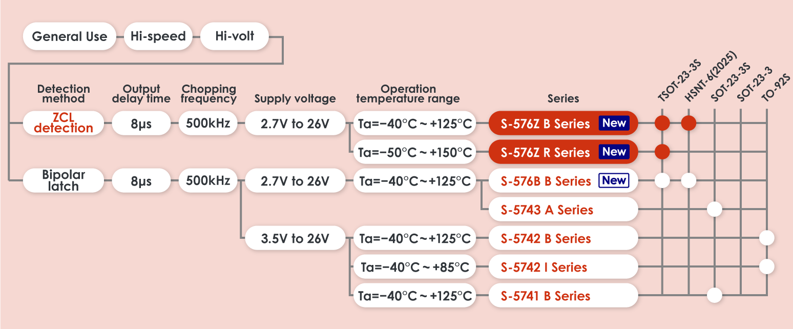 【高速・高耐圧】民生モータ用ホールIC ラインナップ