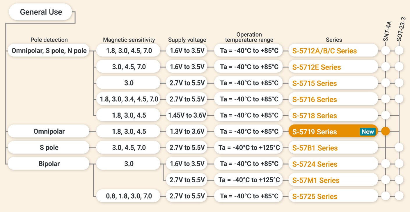 磁気センサ (ホールスイッチ、ラッチIC) ラインナップ