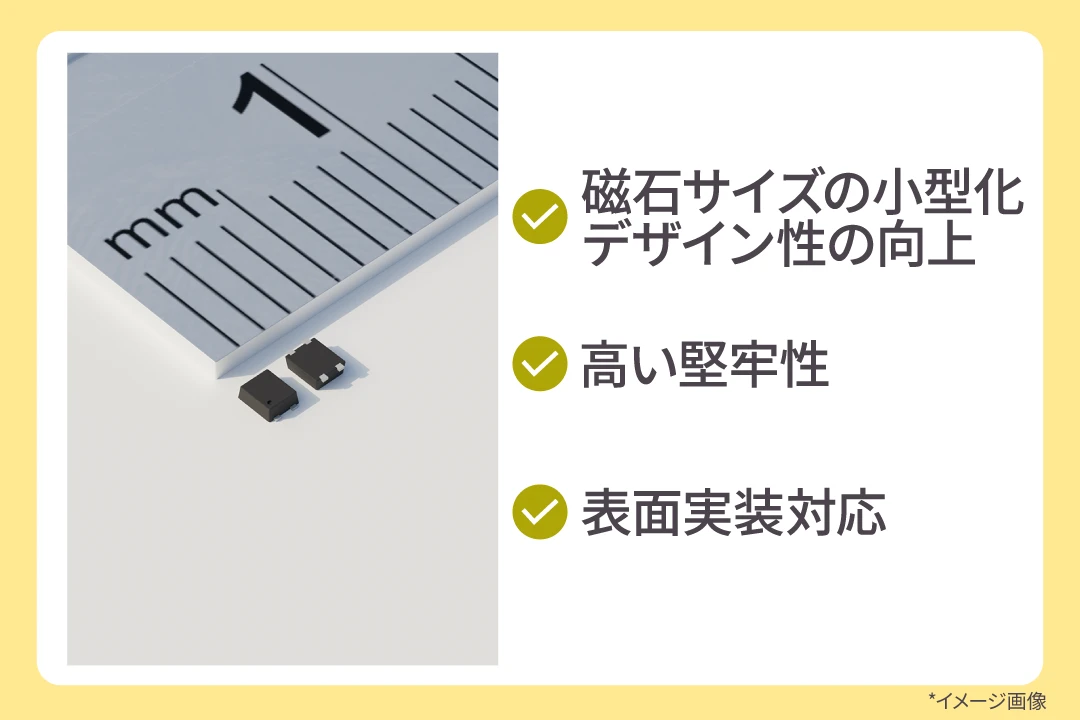 これにより、磁石サイズの小型化・配置自由度を向上させ、最終製品の小型化やデザイン性の向上にも貢献します。