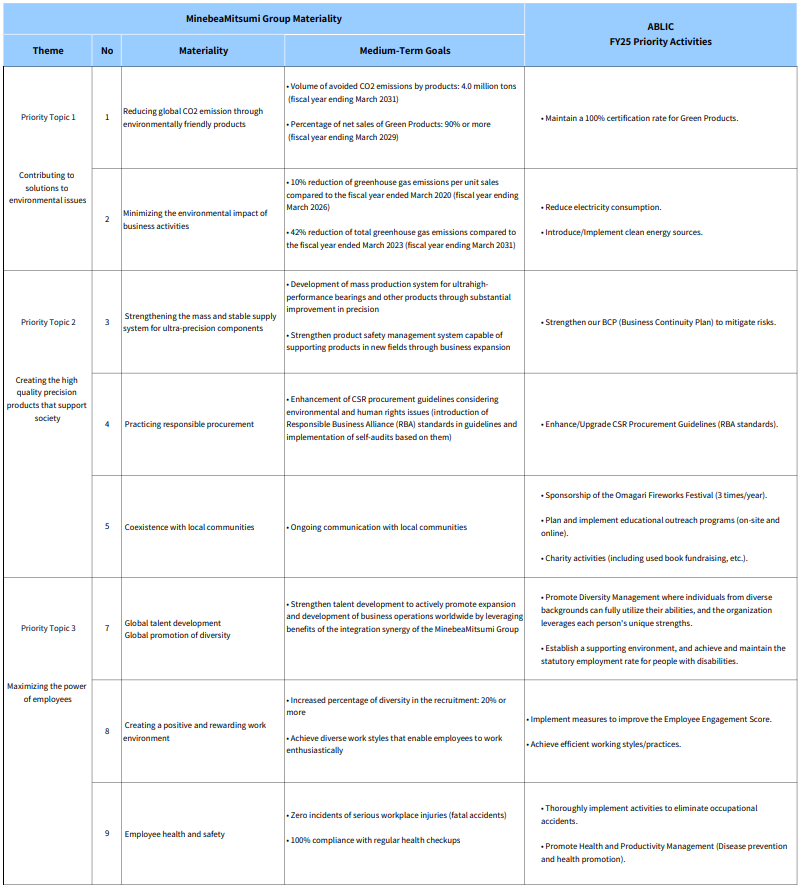 *Please refer to the MinebeaMitsumi Inc. website for details on the materiality identification process.