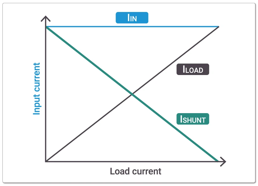 If VIN is constant, even when ILOAD changes, the constant voltage operation of the voltage reference causes ISHUNT to vary inversely, keeping IIN constant. As a result of this operation, the output voltage equation becomes: