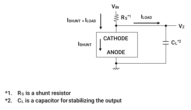 本ICはCMOSプロセス技術を用いて開発した高精度、低温度係数、低出力ノイズのシャント電圧リファレンスでSOT-23-3および小型のHSNT-8(1616)Bのパッケージを採用しています。適切な外付けシャント抵抗を選択することで高い入力電圧からも電源を供給でき、高精度のシステムリファレンス電圧を生成することができます。