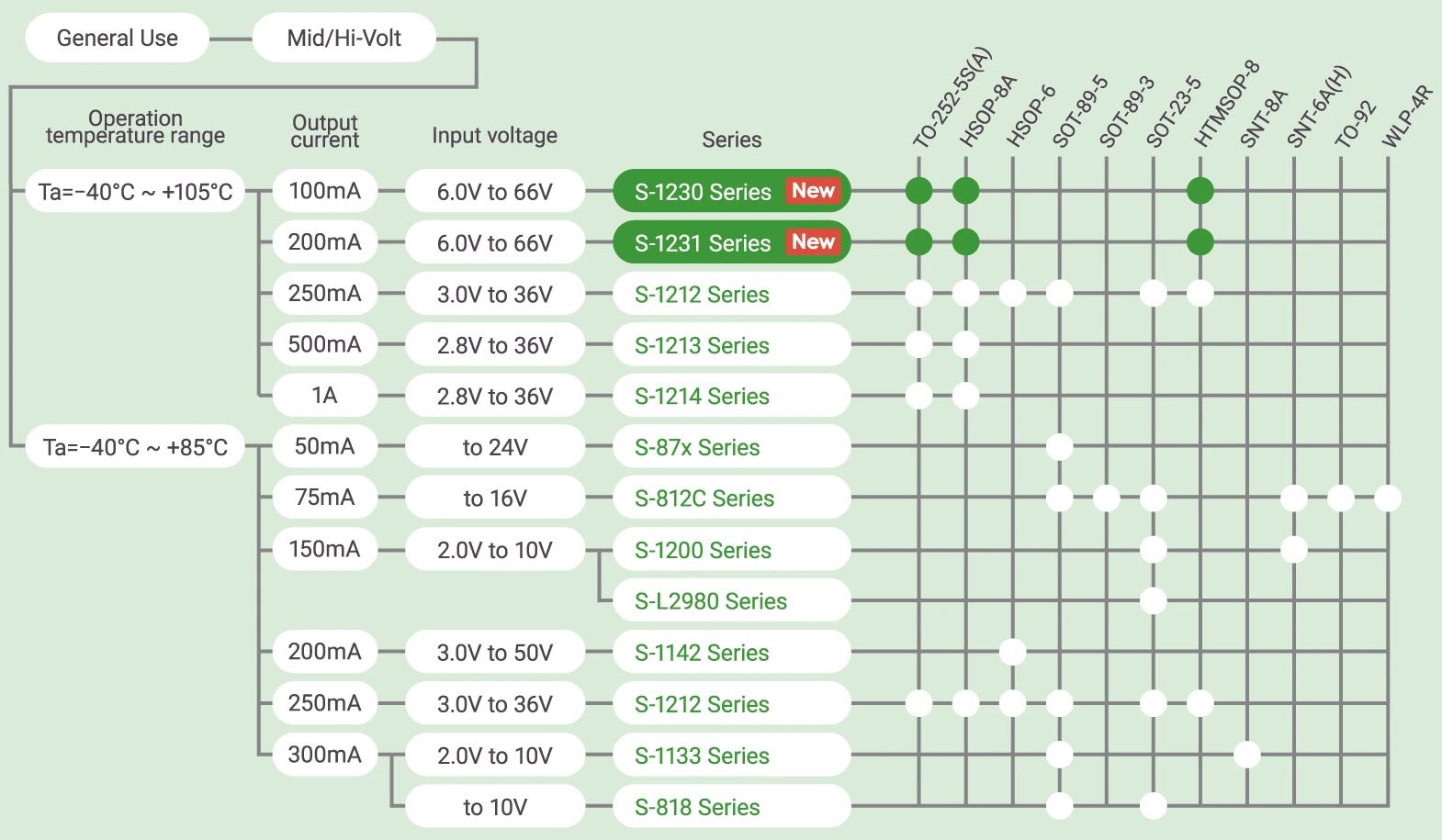 一般用途 LDOレギュレータ (中/高耐圧品) ラインナップ